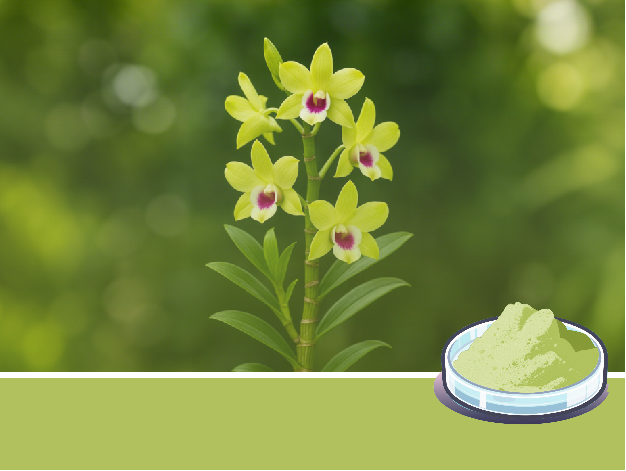 本原料采用兰科石斛属铁皮石斛(Dendrobium officinale Kimura et Migo)或霍山石斛(Dendrobium huoshanense C. Z. Tang et S. J. Cheng)的种子或茎部为原料,经组织培养获得原球茎,再经收集、干燥等工艺制成。该原料富含多糖类、石斛多酚和生物碱(石斛碱)等生物活性成分,同时含有丰富的蛋白质、碳水化合物、氨基酸、维生素以及矿物质等营养素。